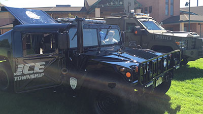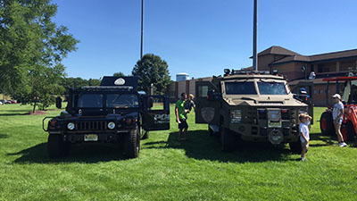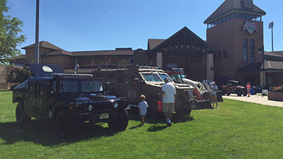 Lakewood BlueClaws first Touch-a-Truck is underway  at FirstEnergy Park. Event began at 11am with a wide variety of trucks from fire trucks to utility trucks and two special vehicles from the Lakewood Police Department.