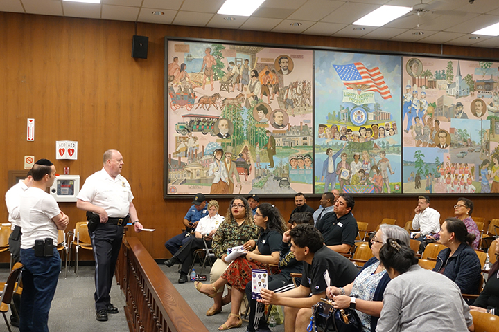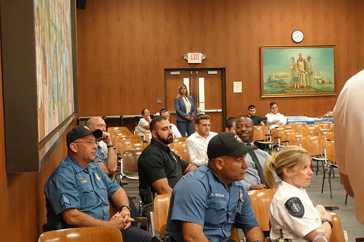 In attendance were members from CHAVEIRIM, HATZOLAH CENTRAL JERSEY, LCSW, LAKEWOOD FIRST AID, LAKEWOOD EMS, BIKUR CHOLIM, LAKEWOOD FIRE DEPARTMENT, NJ HOMELAND SECURITY. *Pastor Juan Angel Monge-Santiago lead us in opening prayer with a flag salute by Police Liaison and Committeemen Meir Lichenstein.