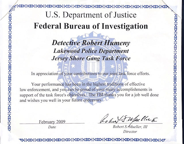 Robert graduated the Ocean County Police Academy on January 20 1998, along with fellow Officers (249, 250, 251, 252, 253, 254,255, 256, 257, 258, 259, 260, 261, 262) from OCPA Class 70.