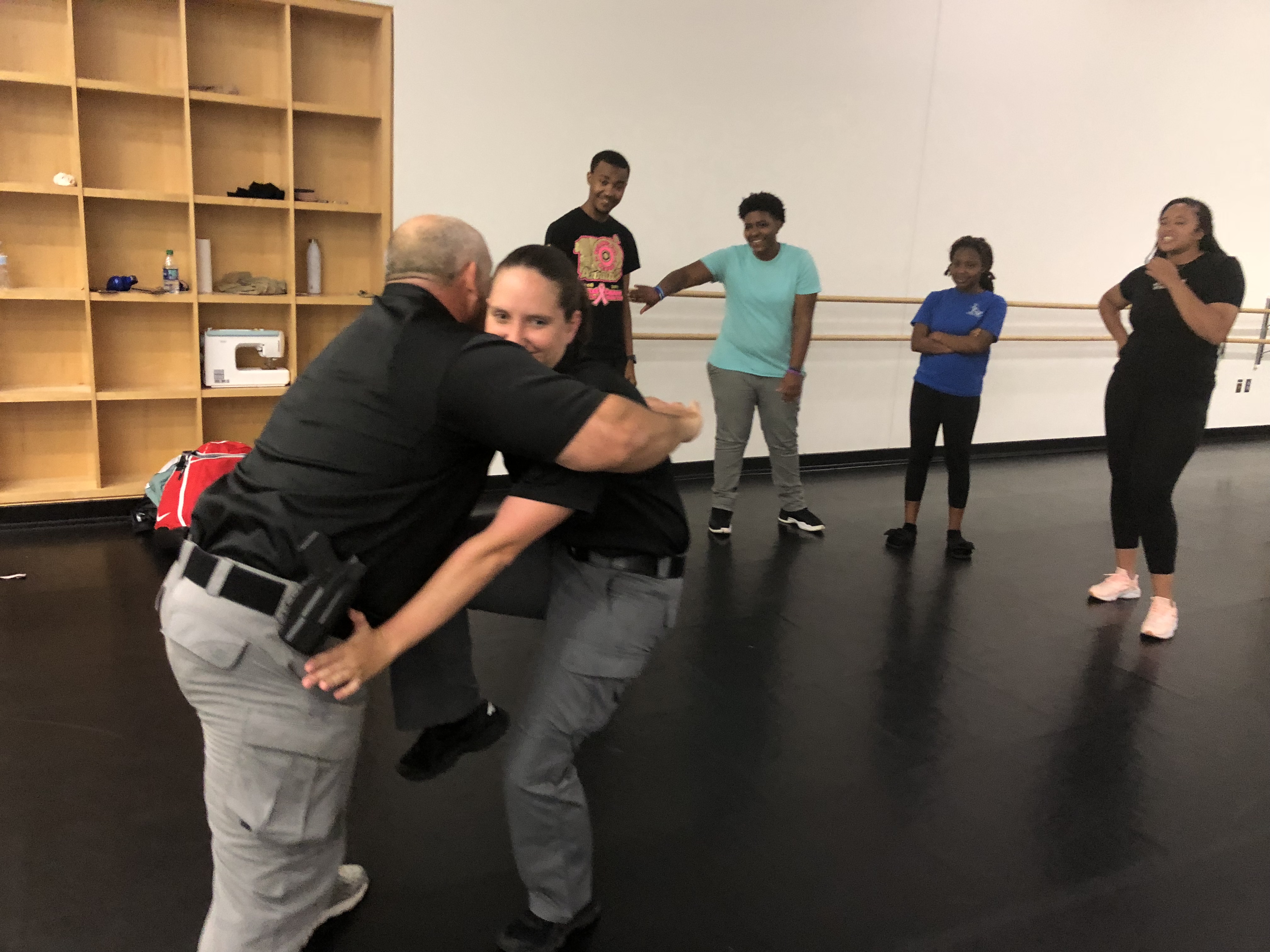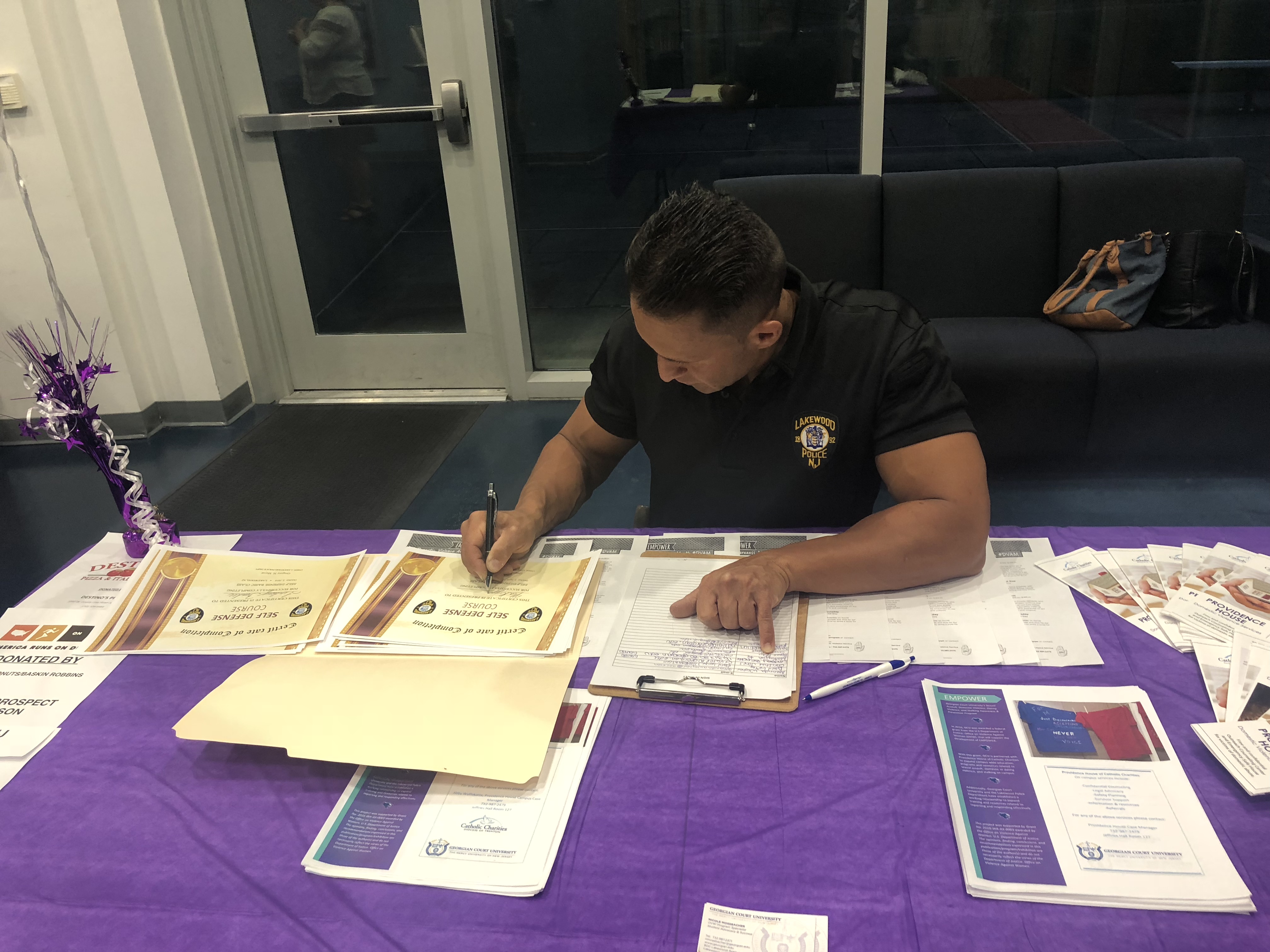 The Police Officers demonstrated hands on field exercises with the co-ed students of Georgian Court University and these exercises were specifically designed to physically protect oneself from a possible ill-fated attack. All attendees upon completion of the class received a *Basic Self Defense Certificate.