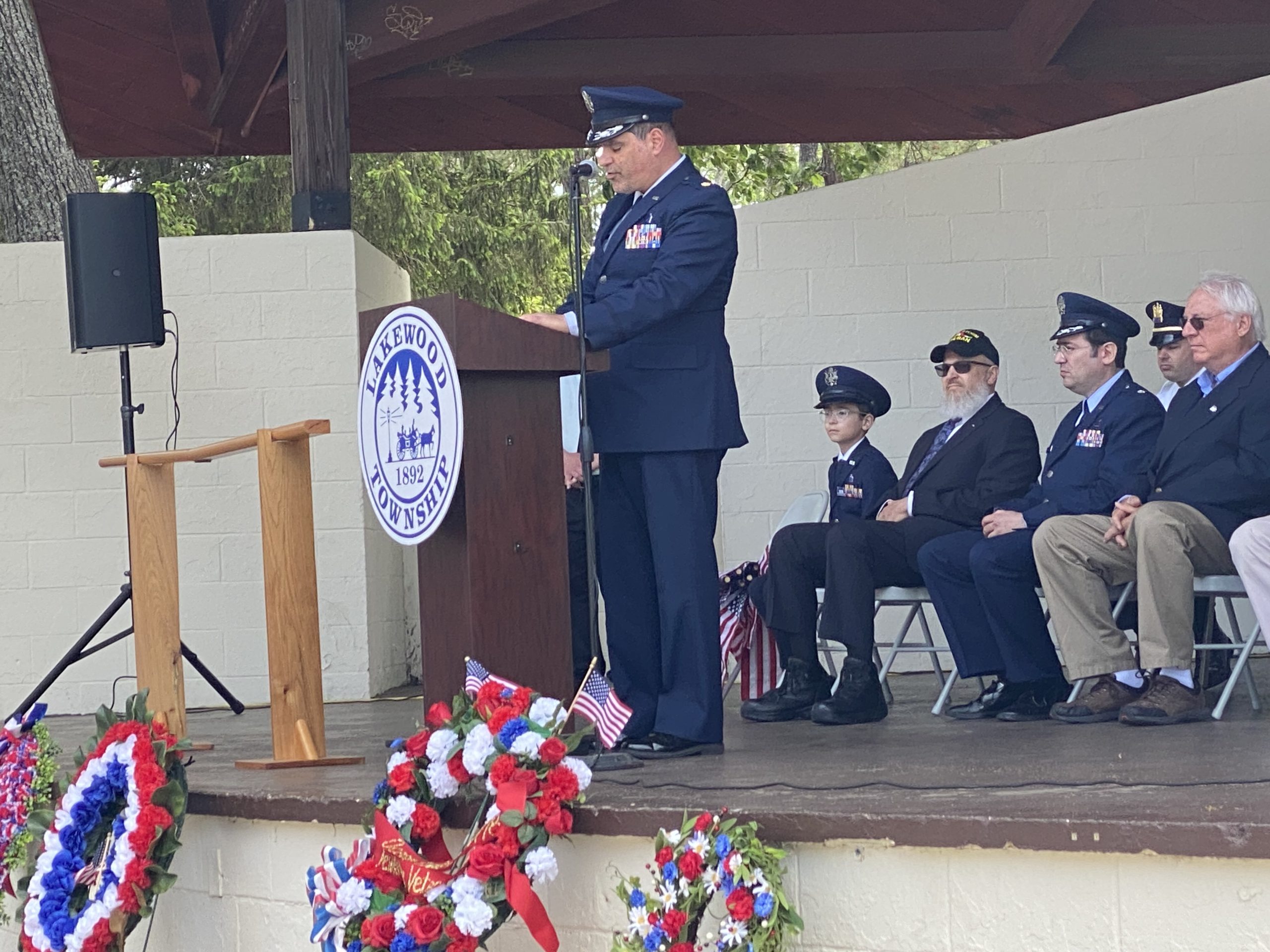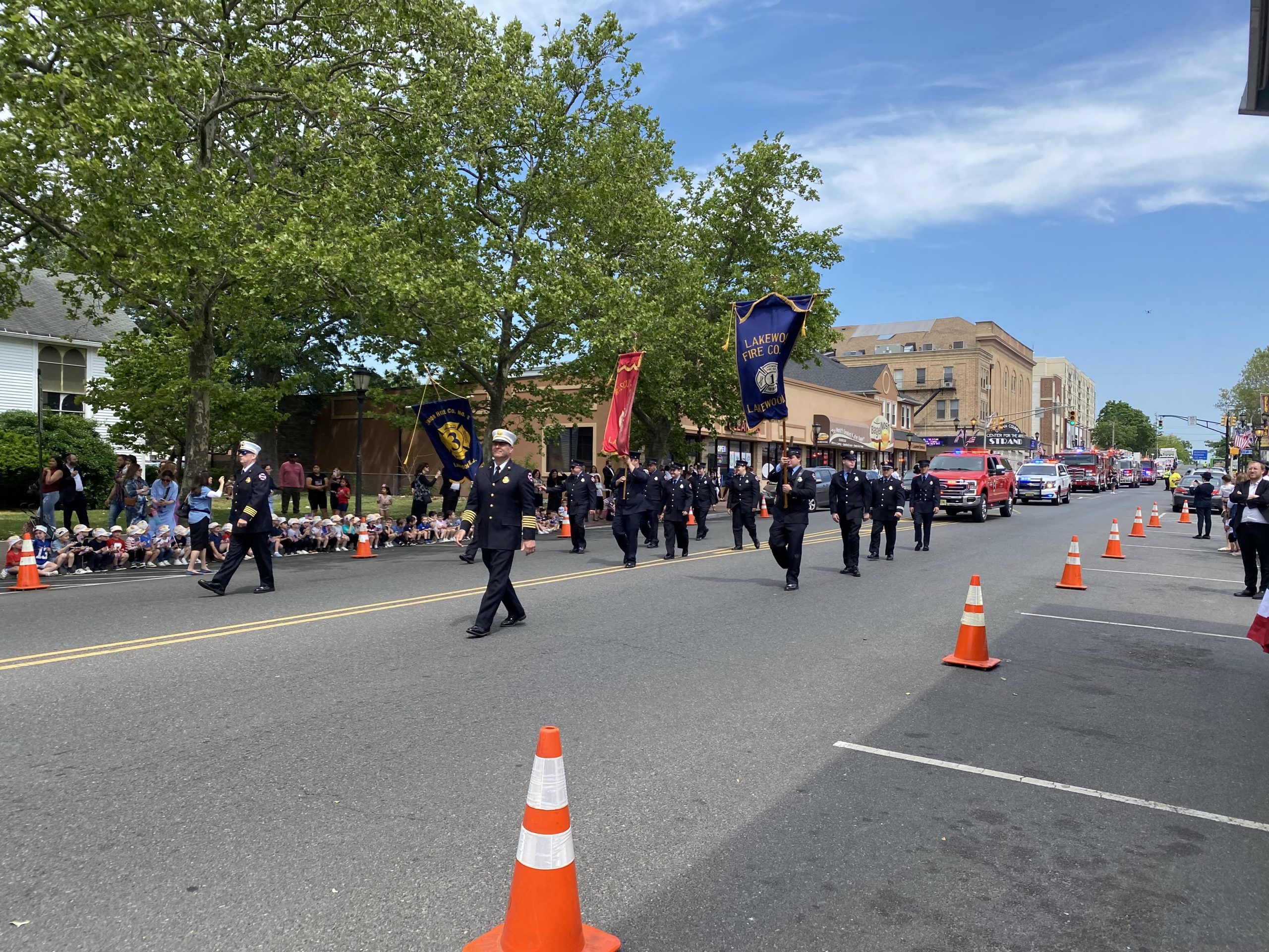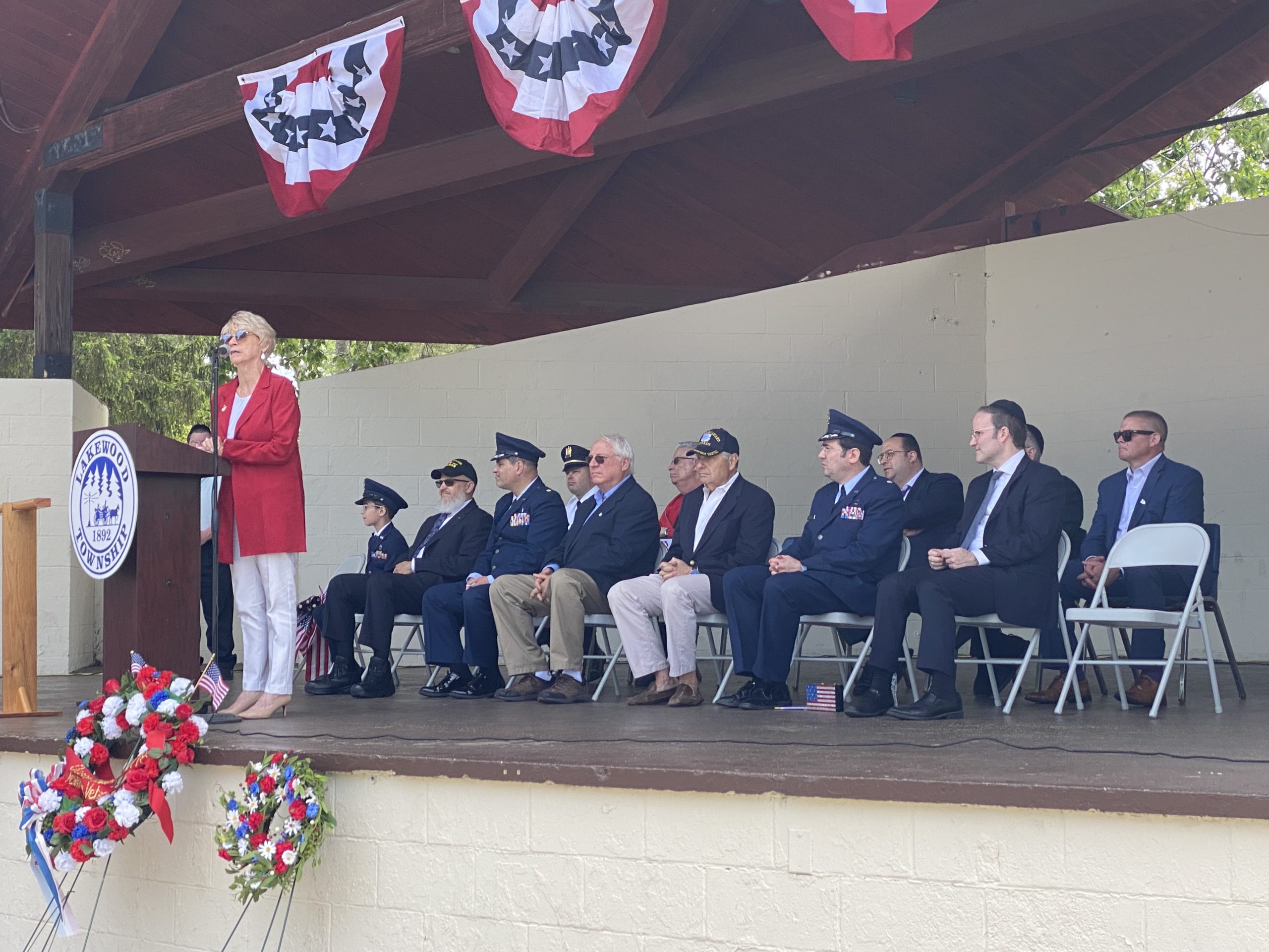 On Monday, May 29, 2023, the Lakewood Memorial Day Parade began with the raising of the Flag at Town Square at 11:00 am. At 11:15 the Lakewood High School marching Band stopped and played before the Township Committee.