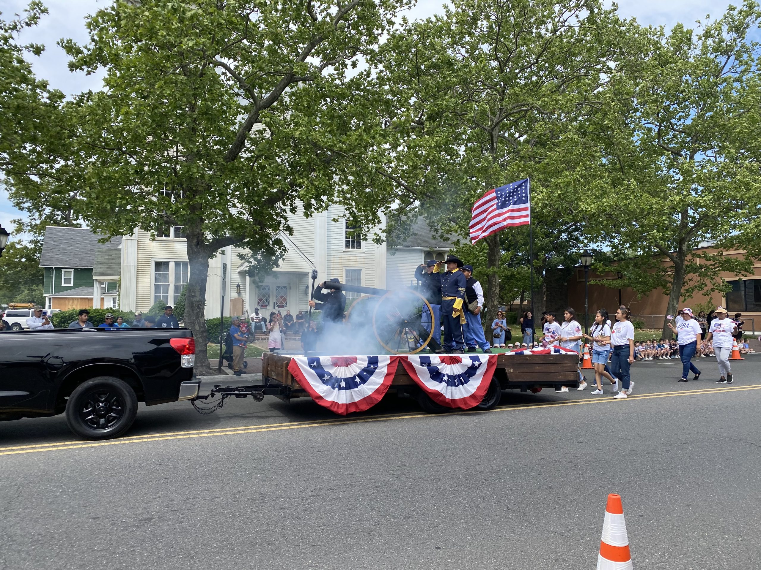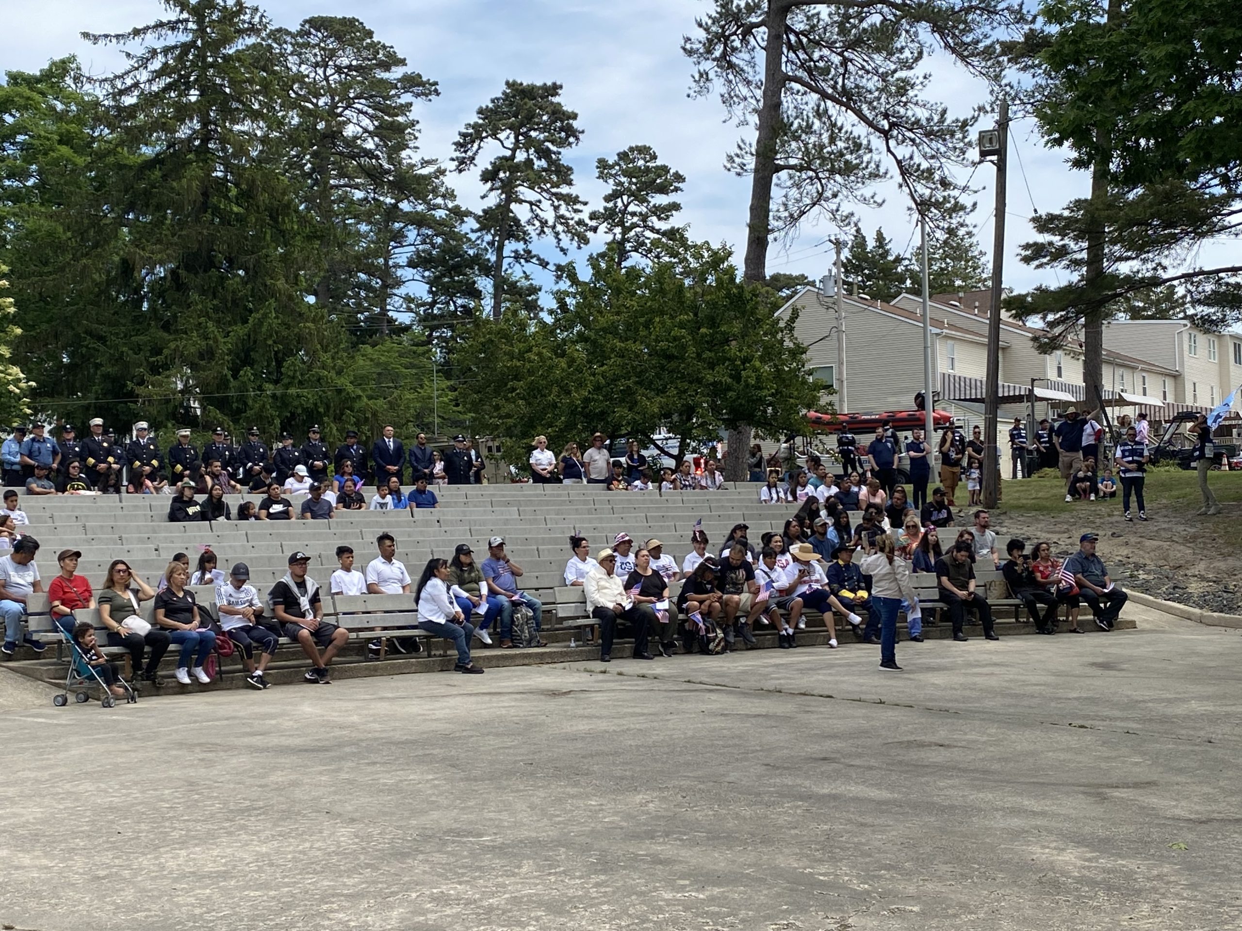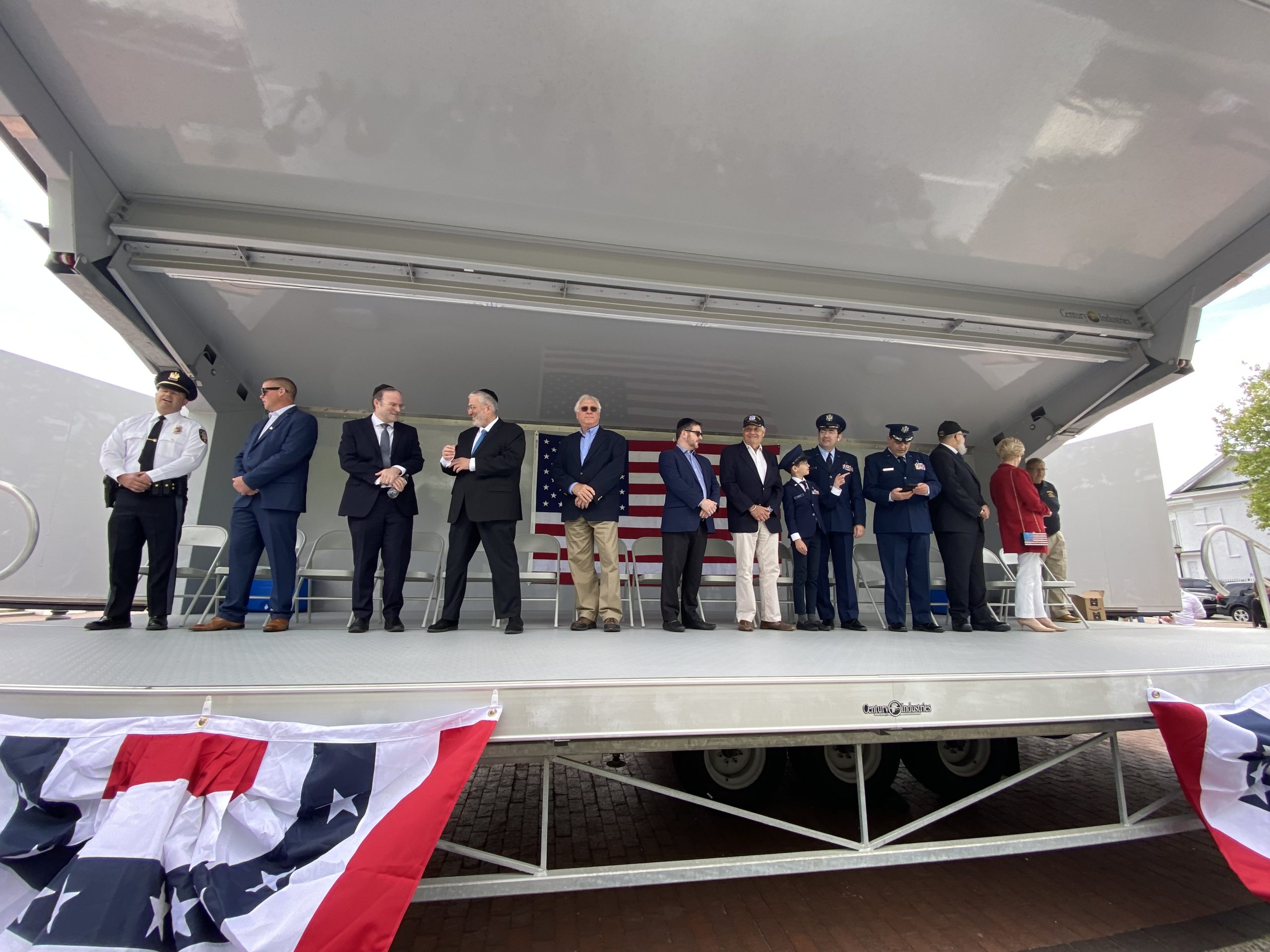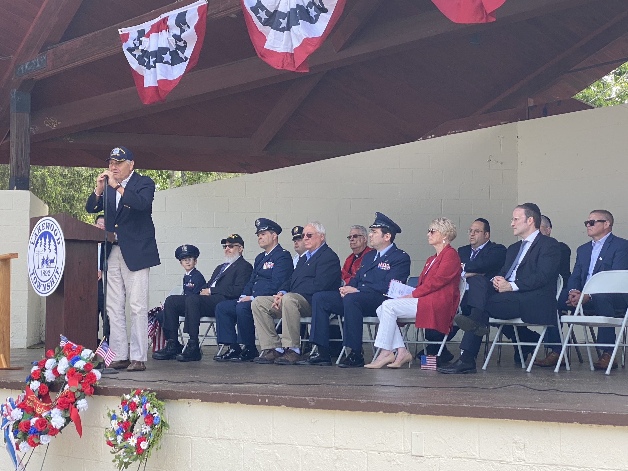 On Monday, May 29, 2023, the Lakewood Memorial Day Parade began with the raising of the Flag at Town Square at 11:00 am. At 11:15 the Lakewood High School marching Band stopped and played before the Township Committee.