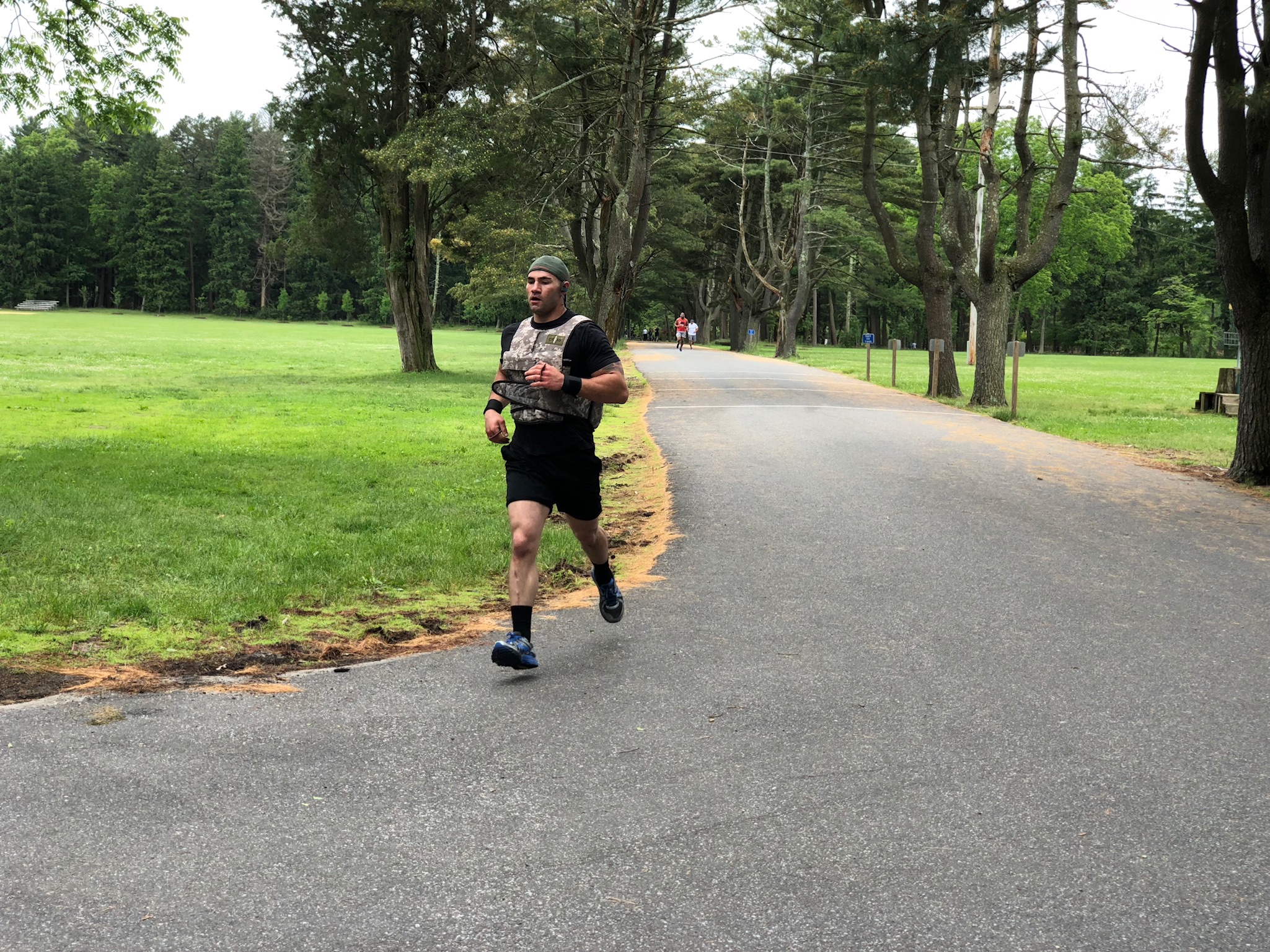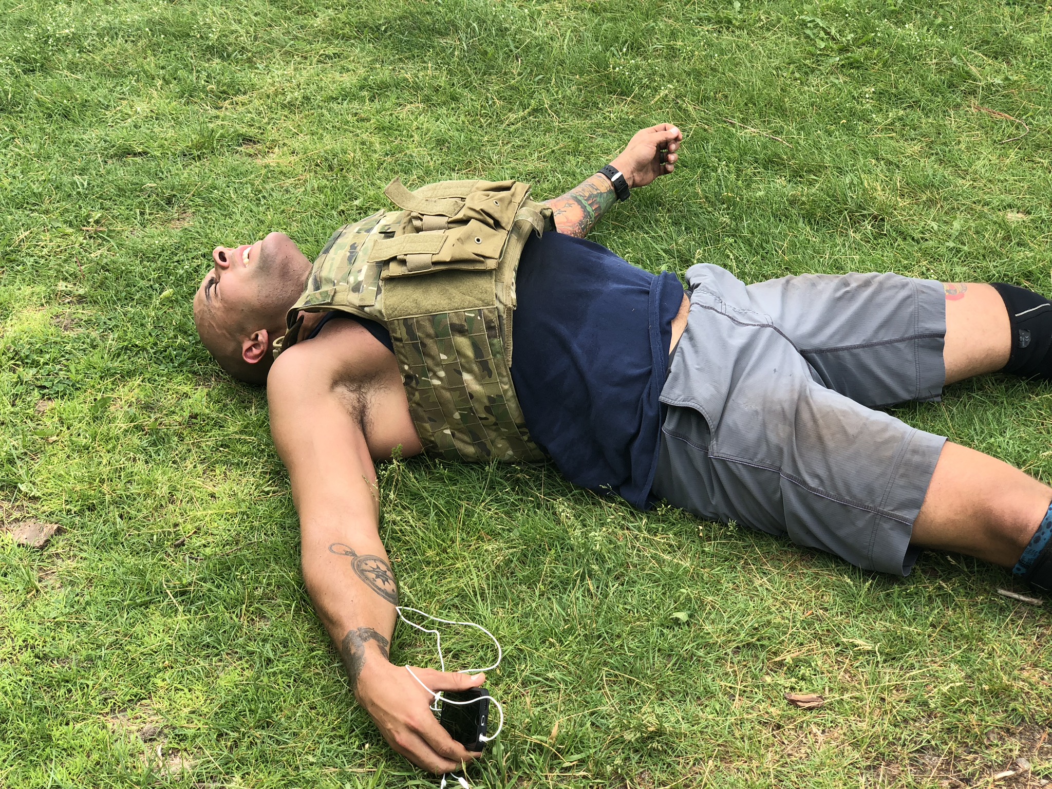 You can do the exercises in any order, but the goal is to get them done within an hour. And guess what? You’re doing all of this wearing a 20-pound vest or body armor – your choice.