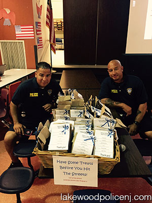 Lakewood Police Officers did a Meet & Greet and Safety Talk with the Oak Street School Extended Year Program on Thursday August 11, 2016. In return, the students provide “Police Survival Kits”.
