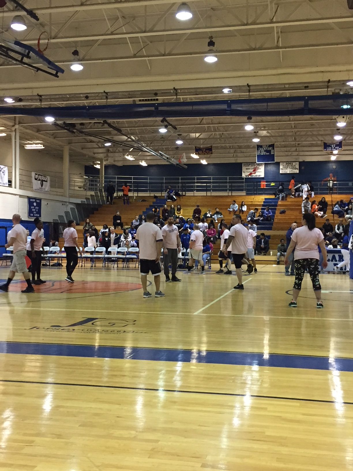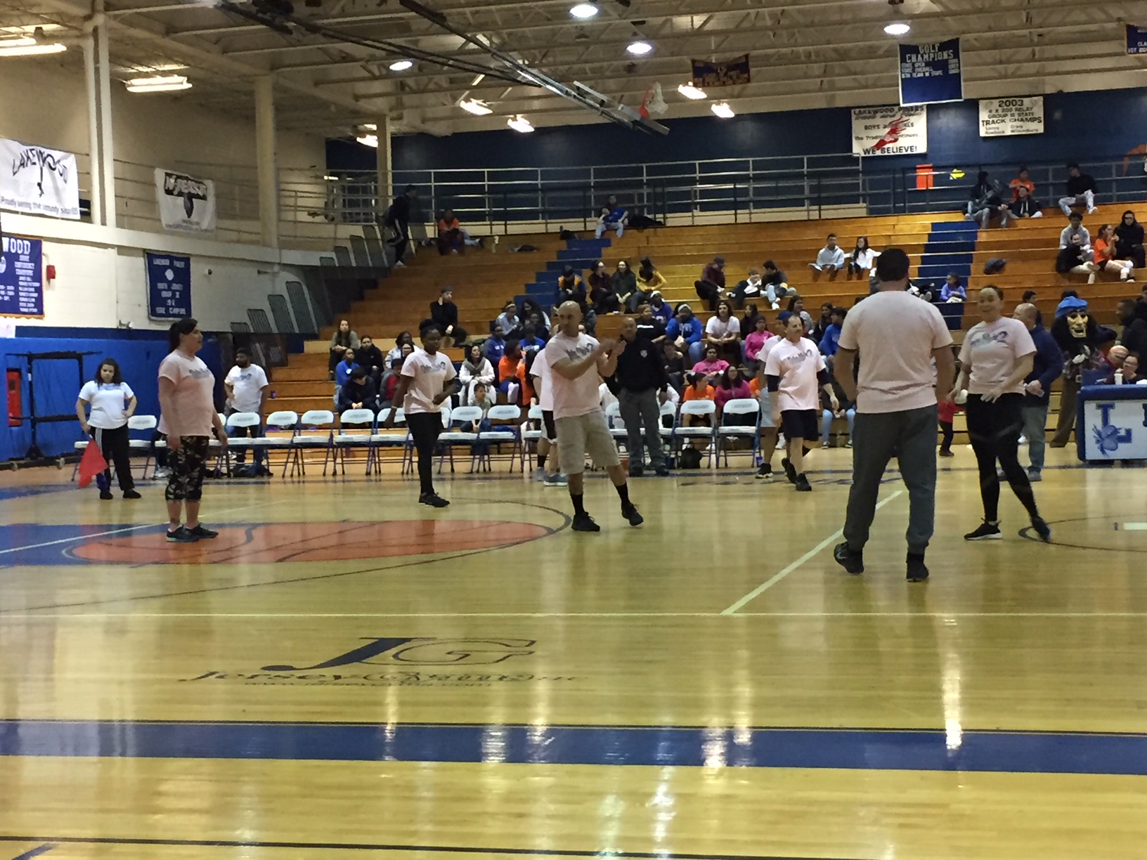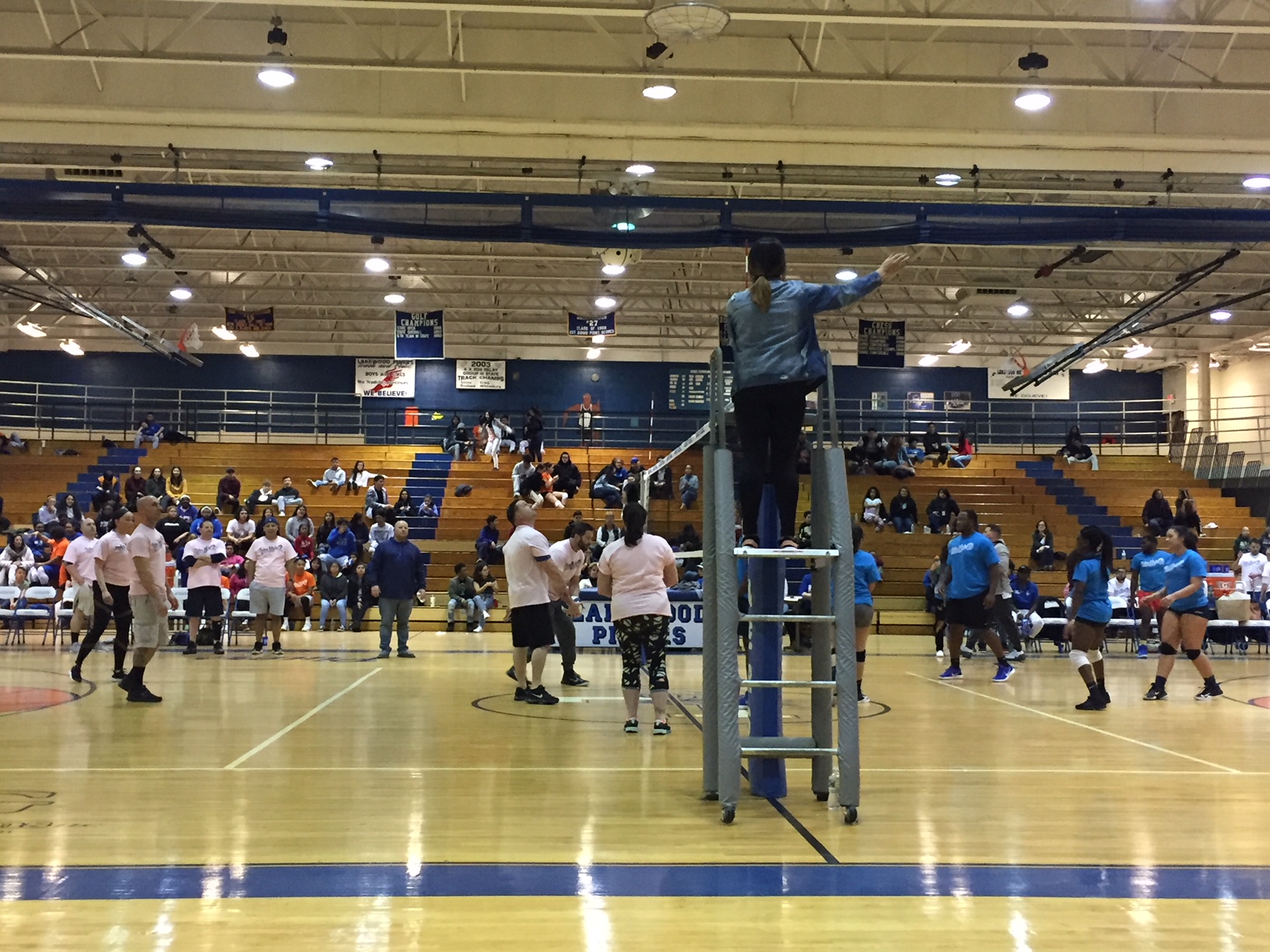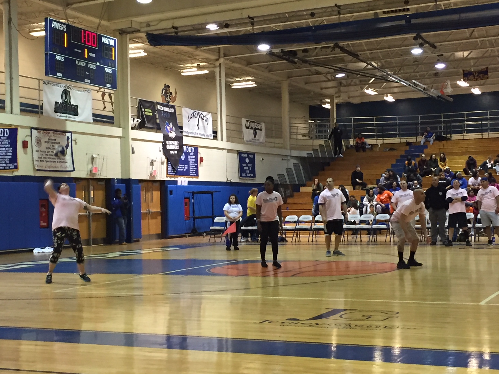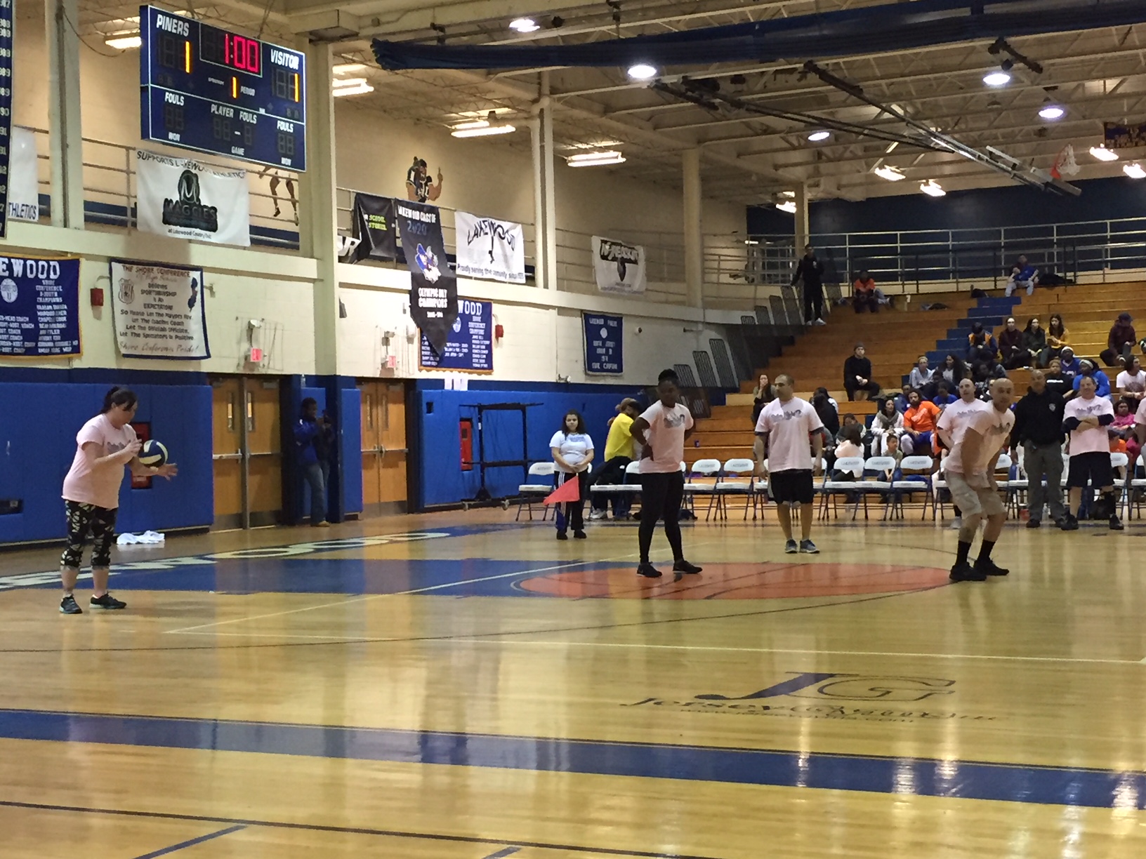 [photo gallery]PBA President Mark Zrebiec congratulates the Lakewood High School Volleyball Team for their “BIG WIN” against the Local 71’s PBA Members. *watch video