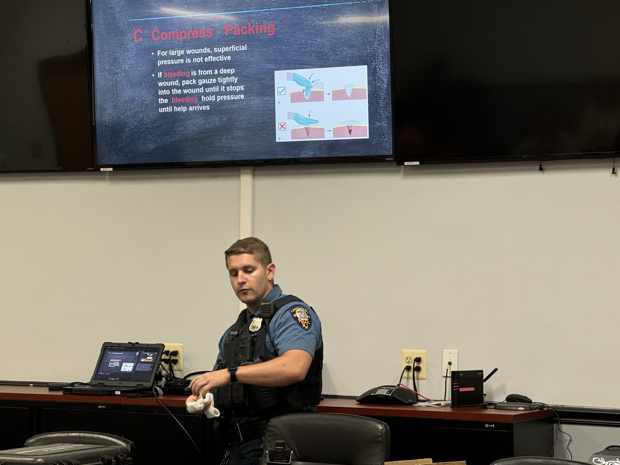 The training aimed to distribute free tourniquet kits to houses of worship, and received enthusiastic participation and positive feedback from all attendees. LPD Officers Joseph Sandstrom and Kyle Seehausen provided essential training, ensuring participants were well-equipped with life-saving skills.