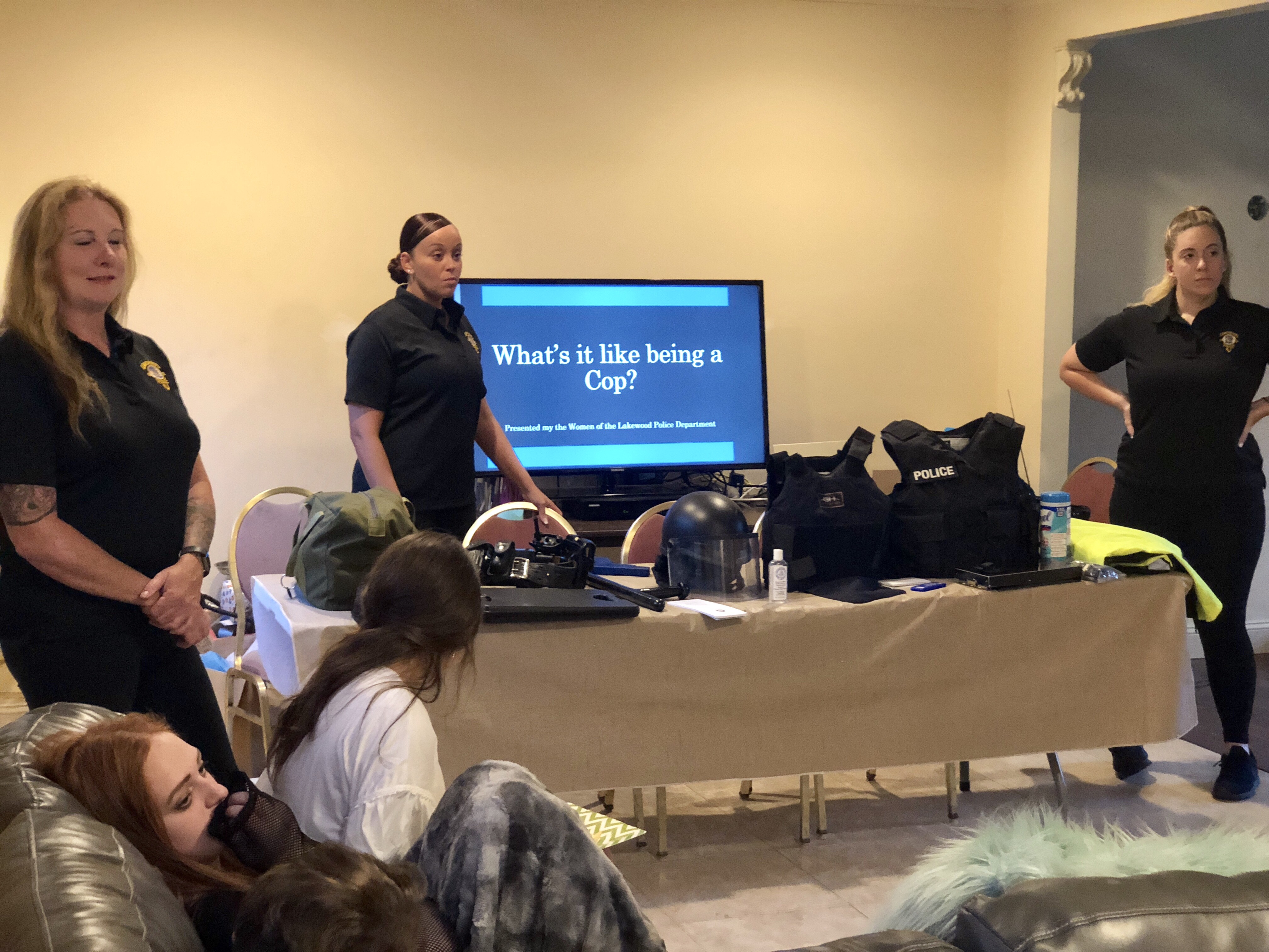 This past week, The topic of discussion was “WHAT’S IT LIKE BEING A COP”. The Girlz Headquarters “HQ” joined the women of the Lakewood P.D. “TMP”, for an interactive evening of learning, live demonstrations, including a police vehicle and duty gear.