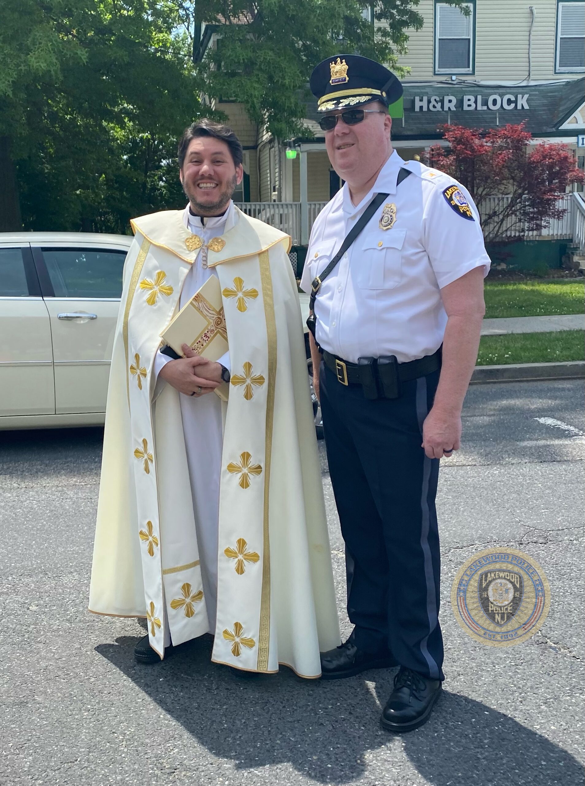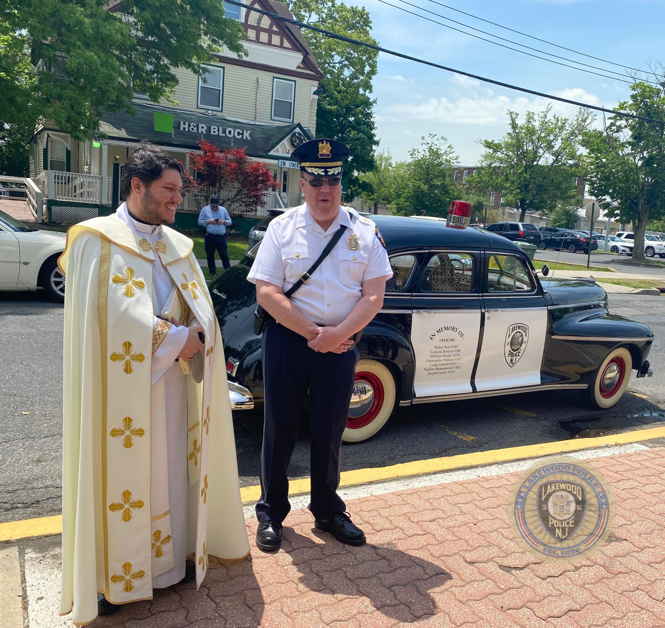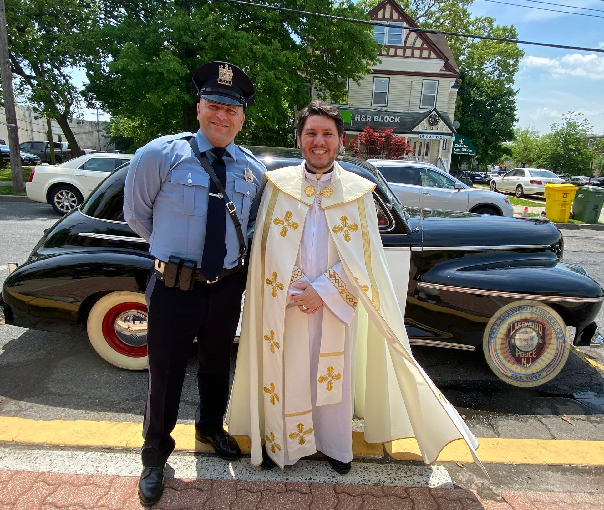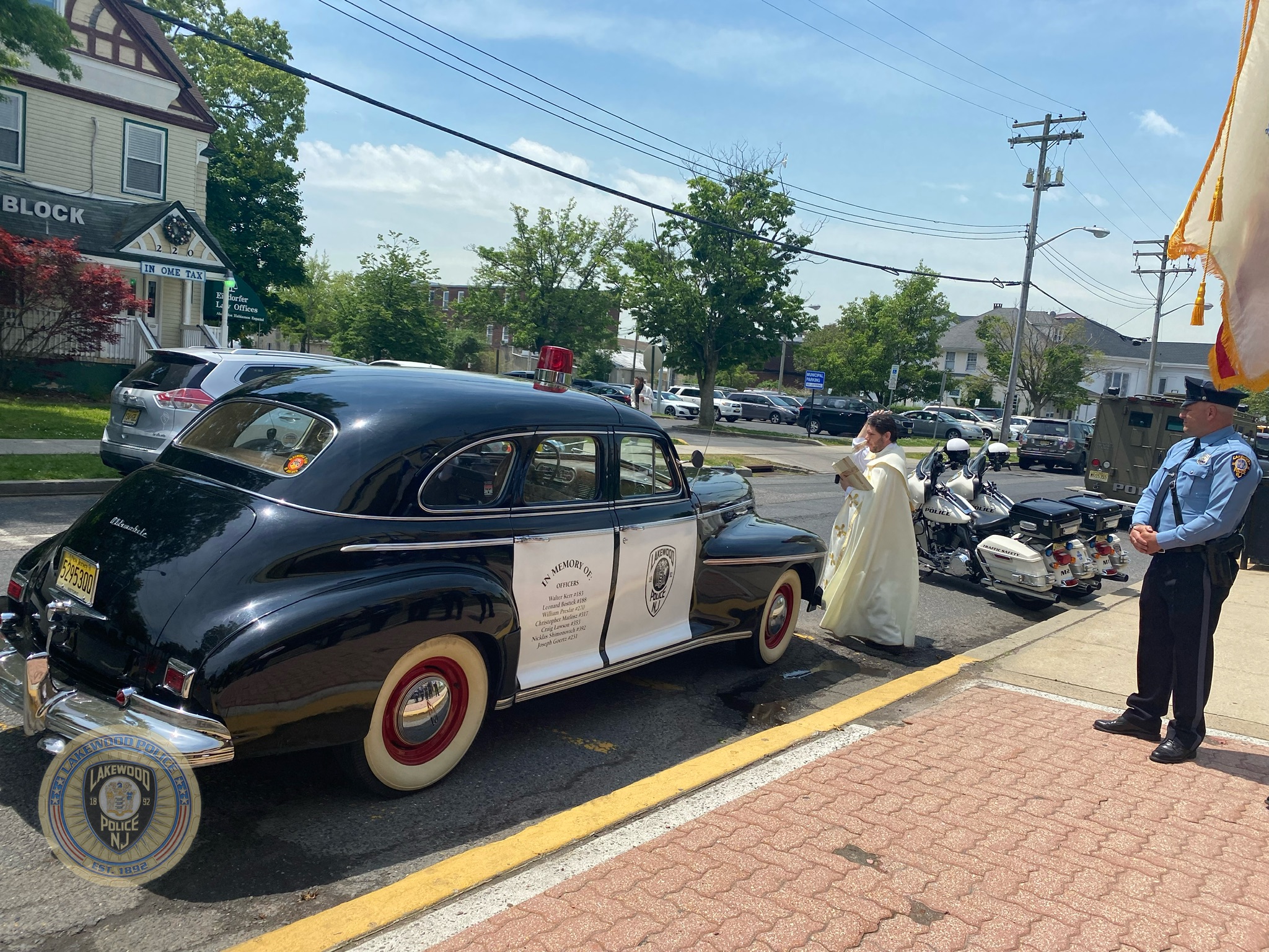 On Friday, May 20, 2022, Fr. Guilherme Andrino from St. Mary Lady of Guadalupe Catholic Church, Lakewood NJ., blessed the 1941 memorial Oldsmobile 4 door sedan that is owned and is on loan to the Lakewood Police Department by Mr. Shrage Pinter.